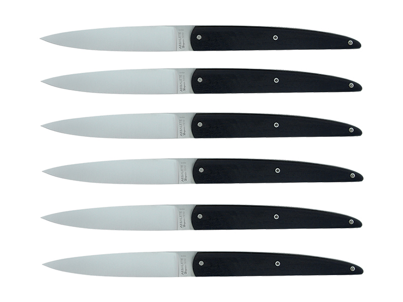 • Coffret 6 couteaux de table G. David Arbalète - manche ébène 23 cm