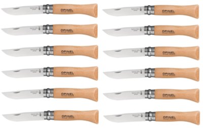 Boite de 12 Couteaux Opinel N°6 lame inox manche en hêtre