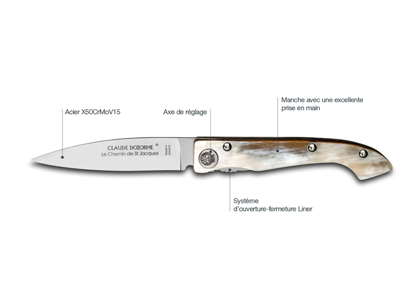 • Couteau C. Dozorme Compostelle Voie du Puy - manche 12,5 cm corne claire