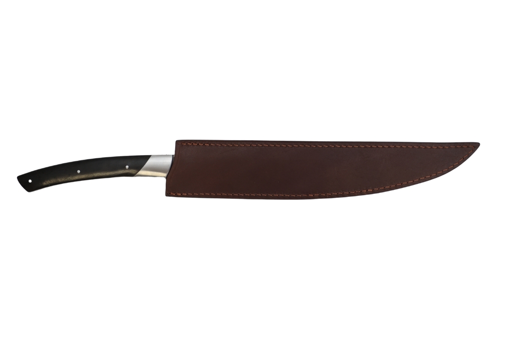 Le couteau à trancher 20 cm dispose d'une lame en acier inoxydable 14C28N. Le manche traditionnel européen est en ébène riveté.