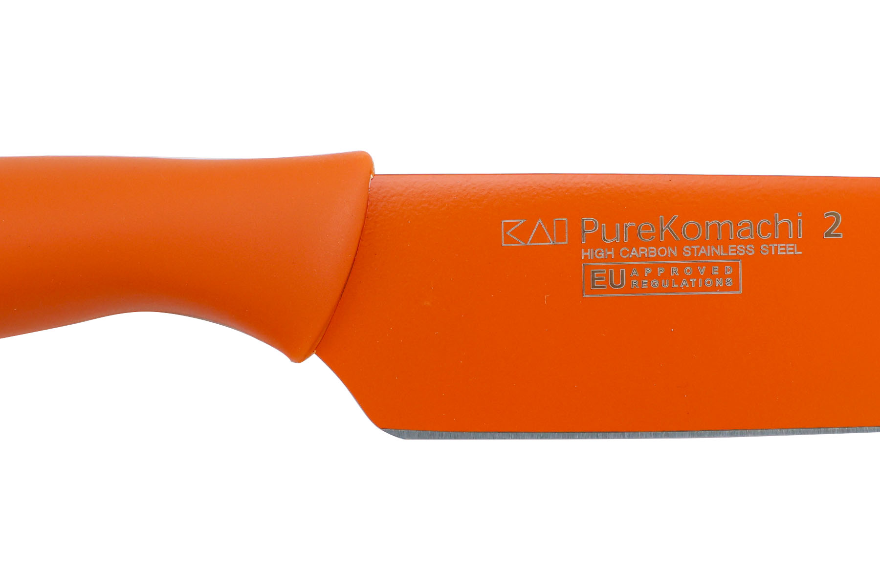 Lame de 23 cm en acier inox recouvert d'une résine orange fluorée anti-adhérente.