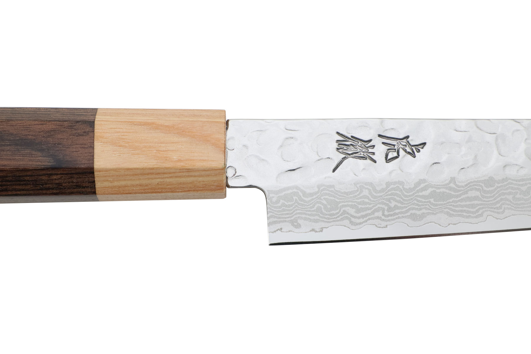 Lame martelée en acier inoxydable VG10 damas (61±1HRC), finition poli miroir.