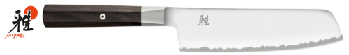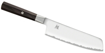 Le nakiri est le couteau à légumes japonais traditionnel. Sa lame haute le rend très agréable à utiliser pour émincer et travailler les fruits et légumes. Naturellement, la qualité de coupe Miyabi en fait un outil très précis. Le tranchant très efficace permet de découper les aliments sans les écraser, phénomène qui peut se produire lorsque l'on découpe des aliments très riches en eau.