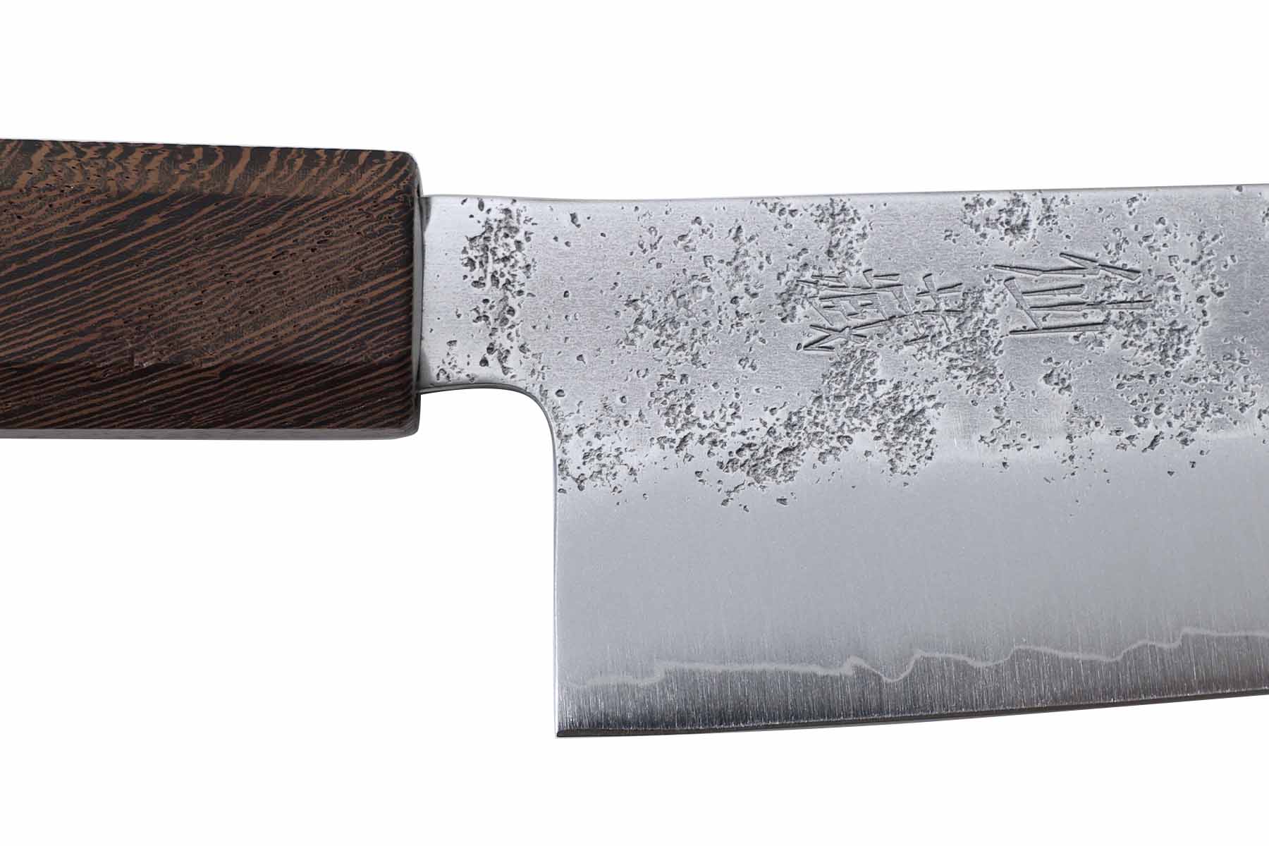 Lame en acier inoxydable Ginsan (Silver 3) (60±1 HRC), finition brut de forge sur le haut de lame.