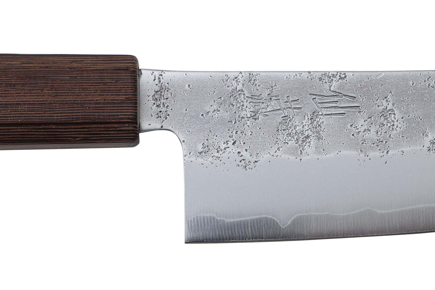 Lame en acier inoxydable Ginsan (Silver 3) (60±1 HRC), finition brut de forge sur le haut de lame.