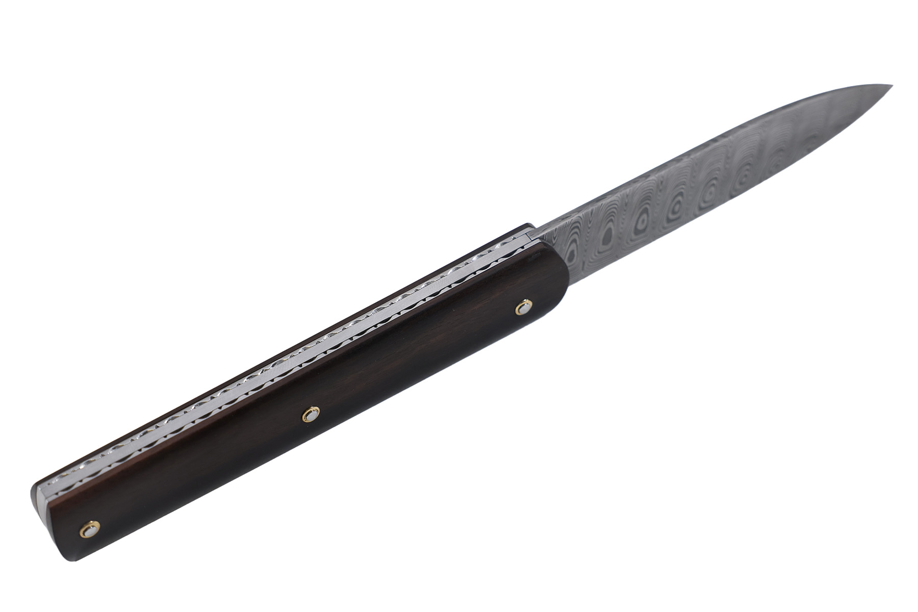 Couteau modèle le Parisii manche ébène de macassar, lame damas