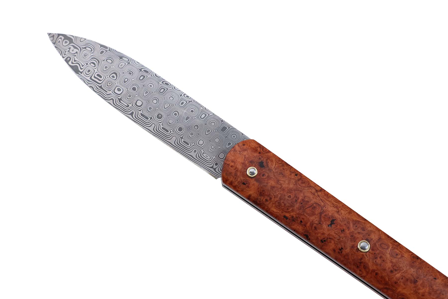 • Couteau modèle le Parisii manche ébène de macassar, lame damas