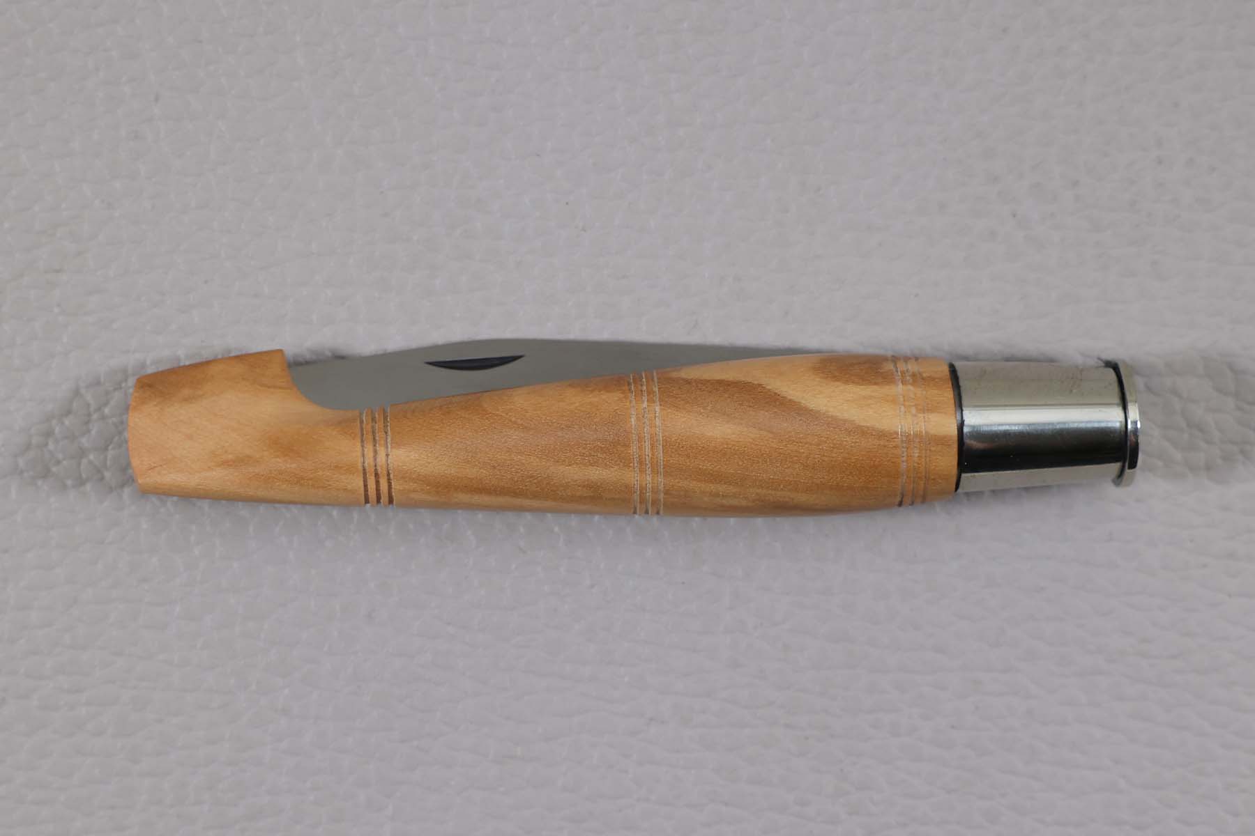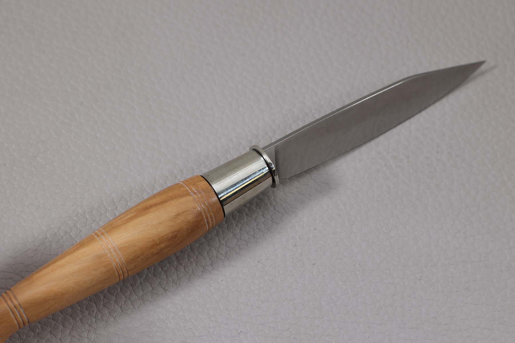 Le manche est en bois d'olivier et muni d'une virole bloquante.