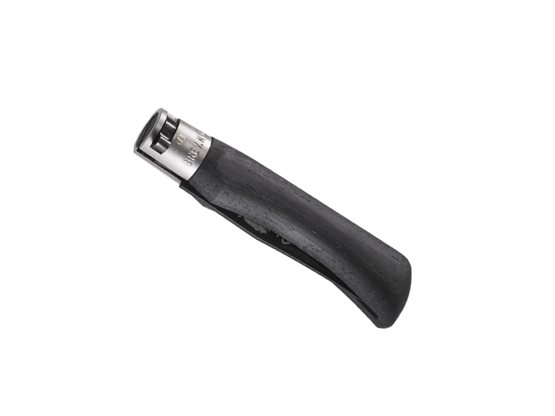Lame acier 420 revêtement PTFE noir avec virole de sécurité en laiton nickelé (position ouverte/fermée),