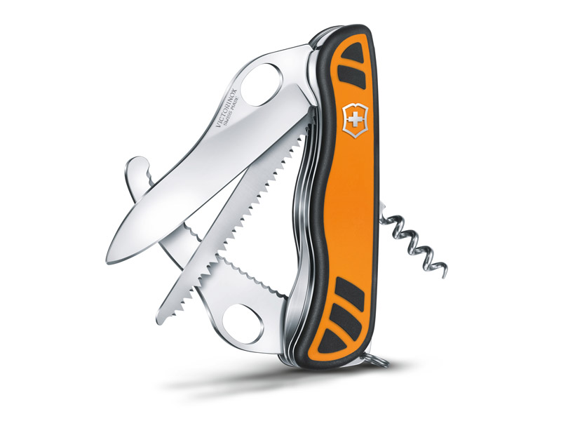 2. lame spéciale à eviscérer ou couper les ceintures, ouverture une main à cran intérieur et tranchant denté