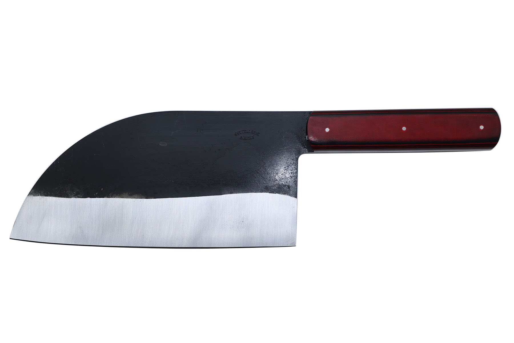 • Hachoir de cuisine style serbe Coutellerie Bourly - manche en micarta rouge