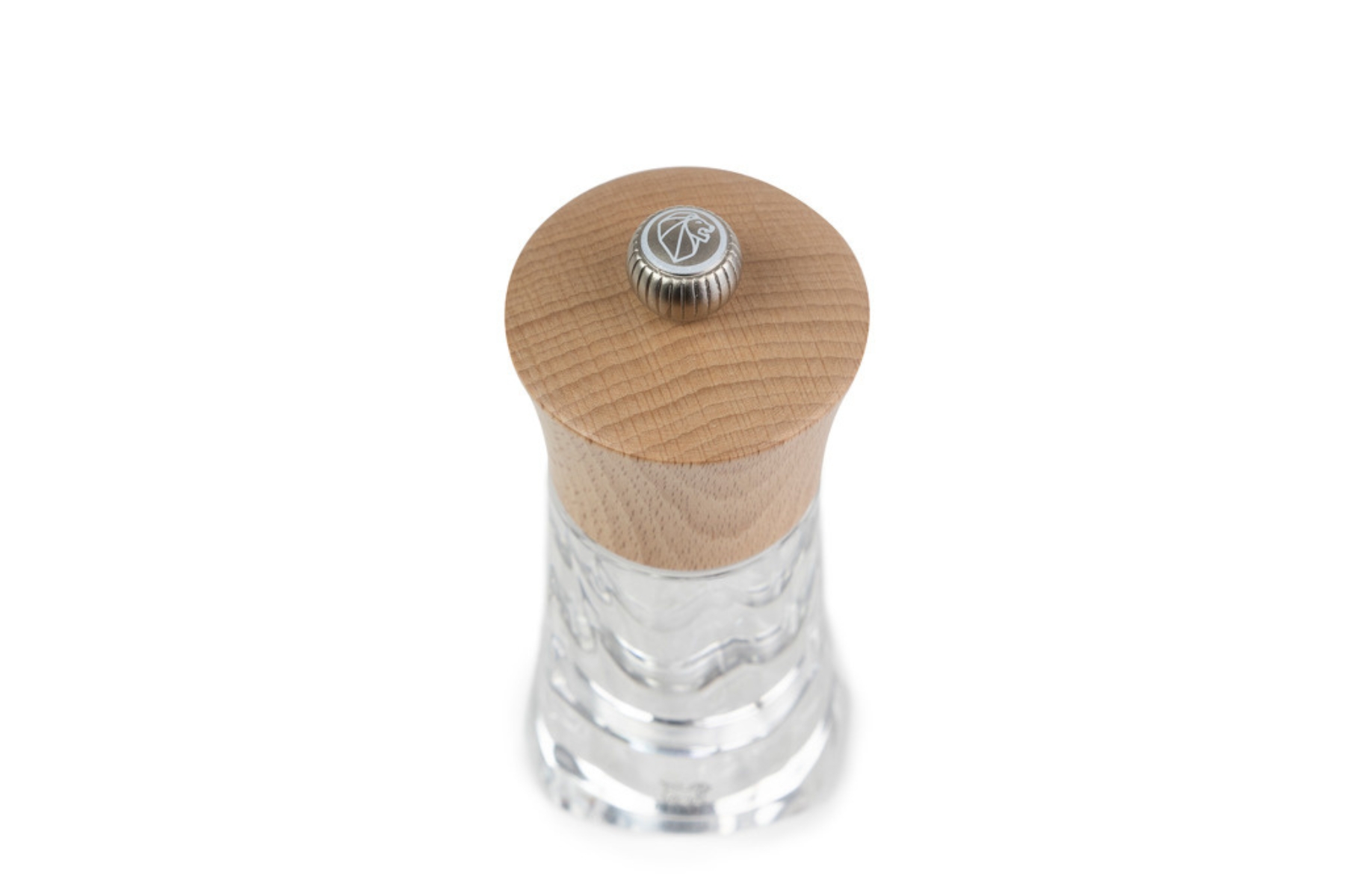 Moulin à sel humide manuel en bois et acrylique couleur naturelle 14 cm