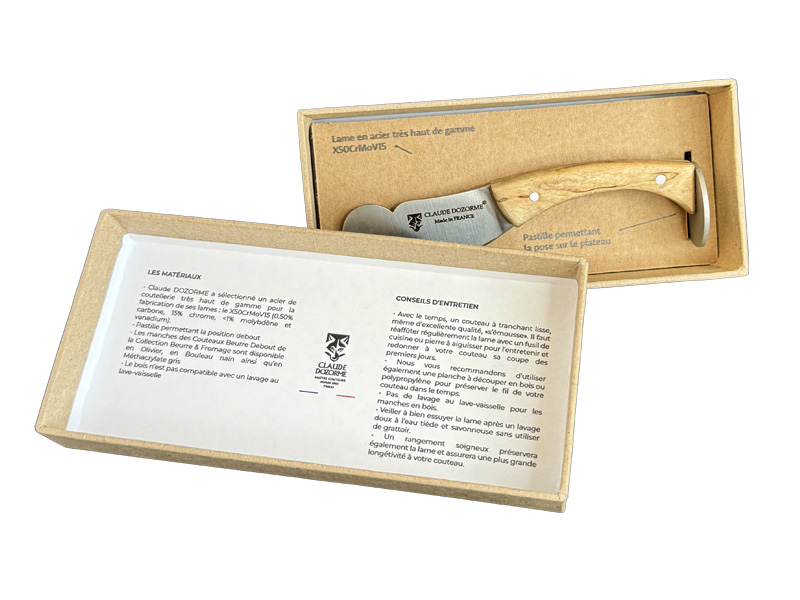Petit couteau à beurre C. Dozorme debout sur socle - manche olivier