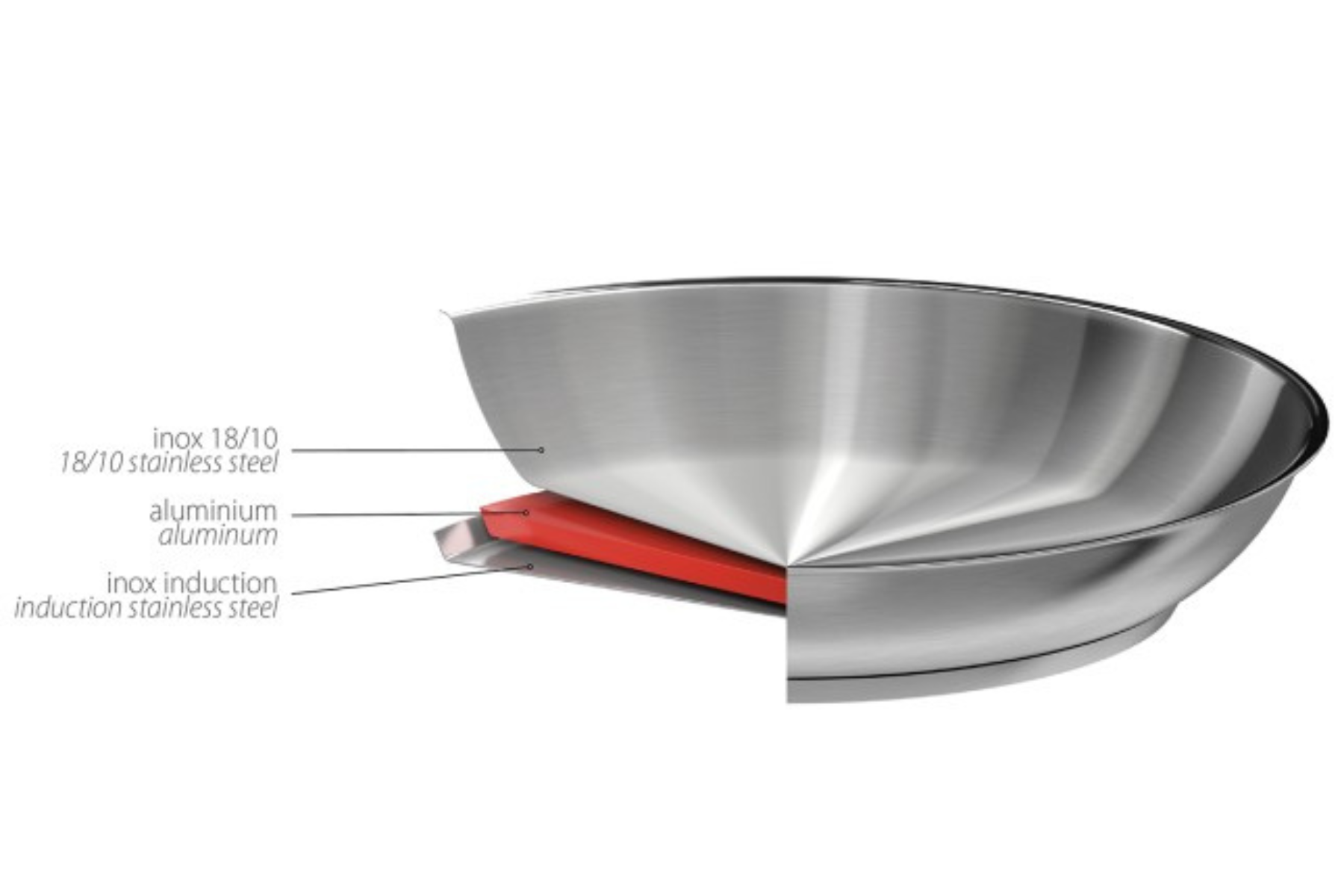 Matériaux : 3 couches : inox induction, aluminium et inox 18/10