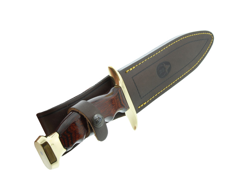 Dague de chasse Bowie de chez Muela avec une lame de 19 cm en acier inox X50CrMoV15, un manche en stamina et une monture en laiton.
