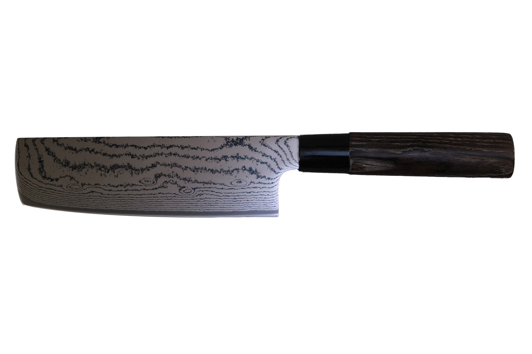 Le traditionnel couteau à légumes japonais. Il est utilisé surtout pour couper toutes sortes de légumes sur planche et même la viande, malgré sa forme en hachoir, il n'est pas indiqué pour couper les os.